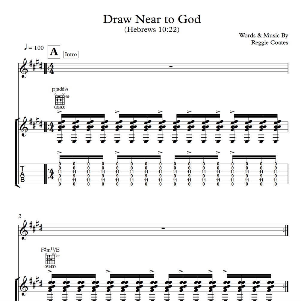 You will digitally get Reggie's song Draw Near to God in Music Notation and Guitar Tablature.